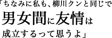 本作のヒロインの1人。恋愛応援委員会所属の高校1年生。ドライでダウナー系の後輩である。生徒会長に見込まれて恋愛応援委員会に途中入会する。髪は脱色し染めている。柳川のことが気がかりのようだが...?