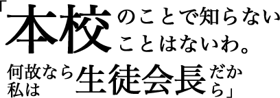 藤高生徒会長の高校3年生。容姿端麗、完全無欠、神出鬼没な生徒会長で藤高生徒全員から慕われている。(一部の生徒会メンバーを除く)お節介で面白そうなこと全てに首をつっこむ。銀髪は地毛らしい。